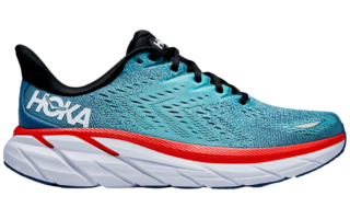 “The Hoka One One Clifton 8 is a multi-purpose daily trainer with a smooth and stable ride. Its rocker midsole eases you through transitions and saves you energy over long distances.