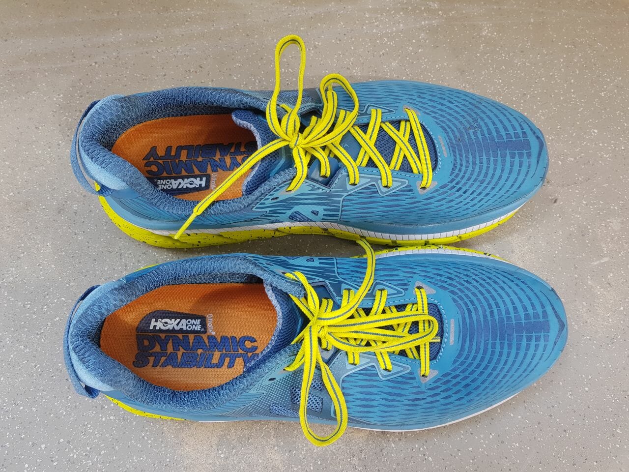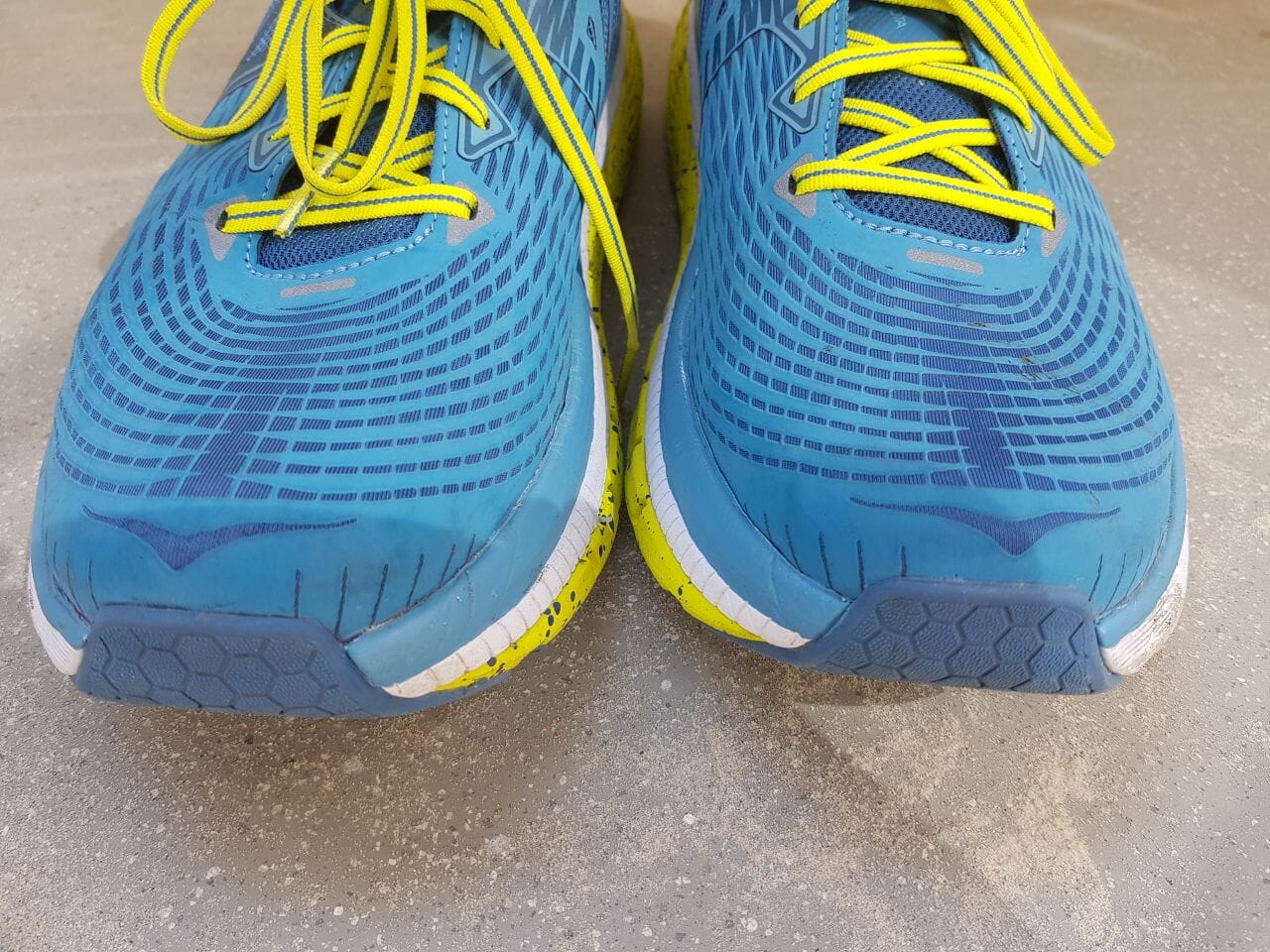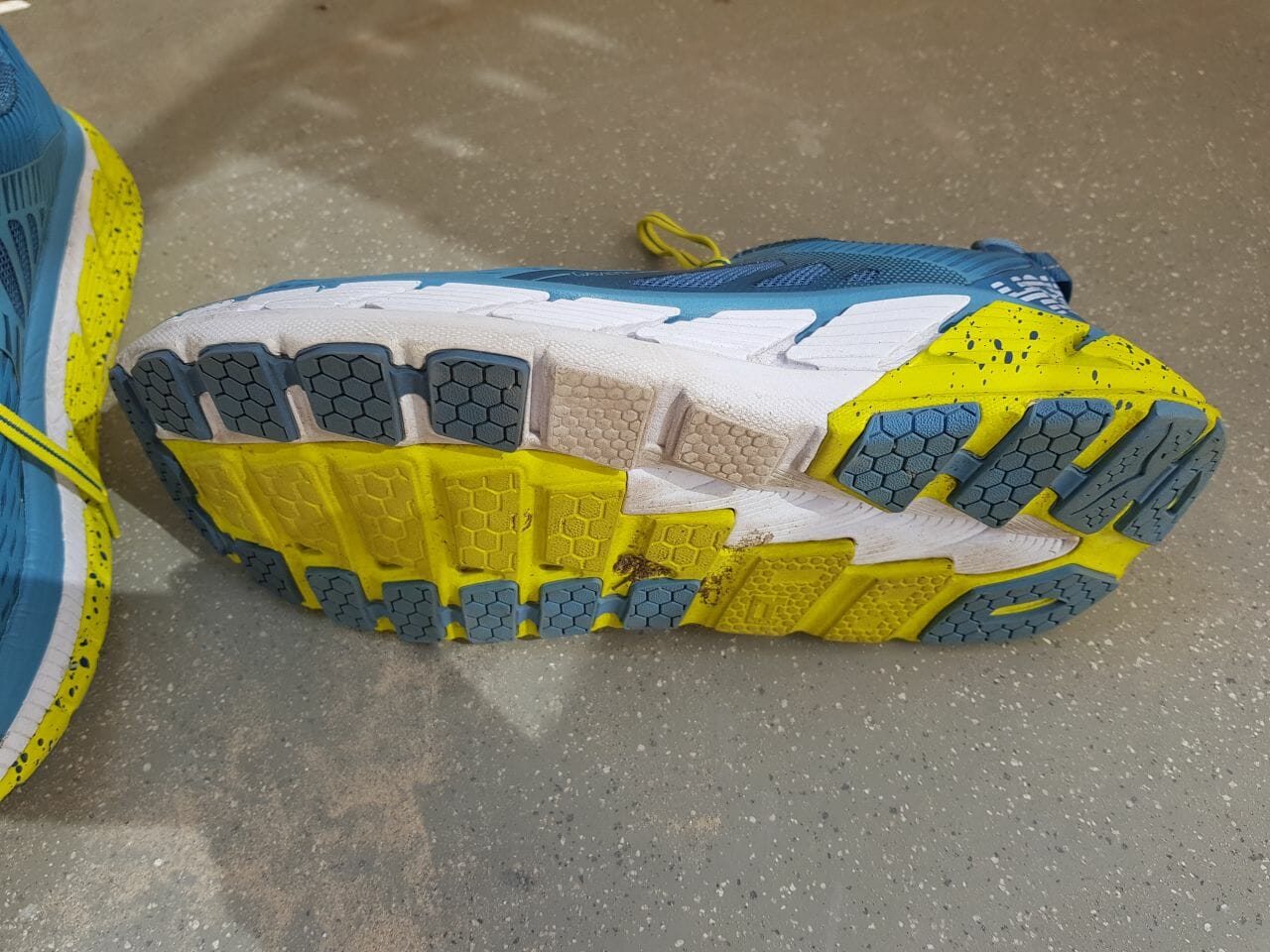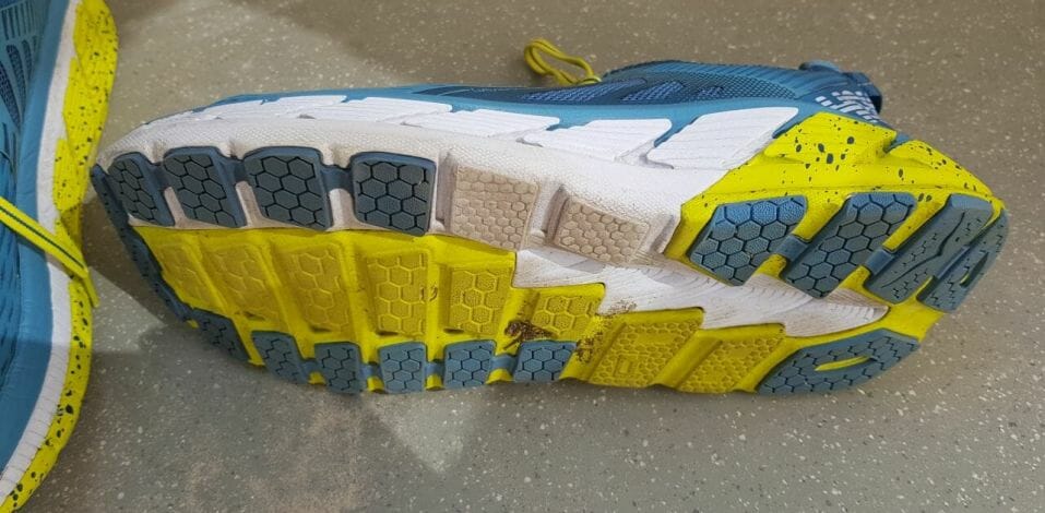 The midsole is made of RMAT, Hoka’s mix of rubber and EVA that receives so much praise in most all other Hoka reviews in here. It’s a great mix of cushioning and light weight.
