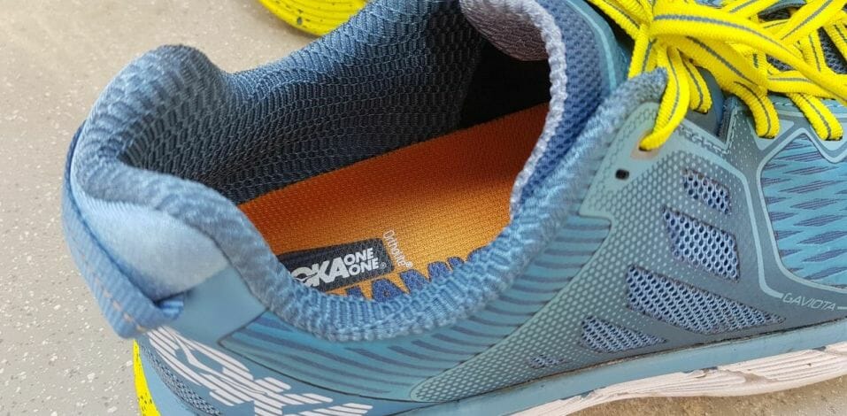 The Gaviota, like most Hokas, has a very high sole. Your foot though sits somewhere in the middle of that, and it’s “wrapped” around by the walls of the midsole.
